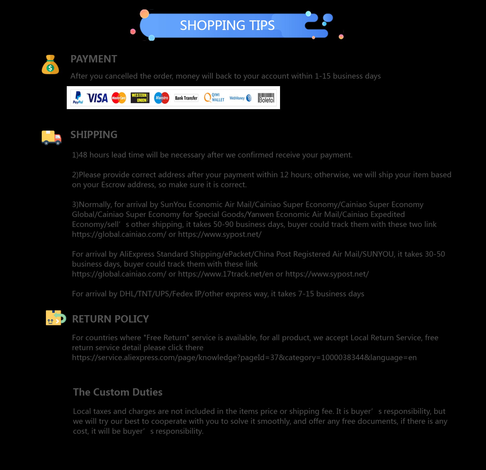 Kargo ve İade: 200$'lık tüm siparişlerde dünya çapında kargo, 2-5 iş günü içinde teslimat